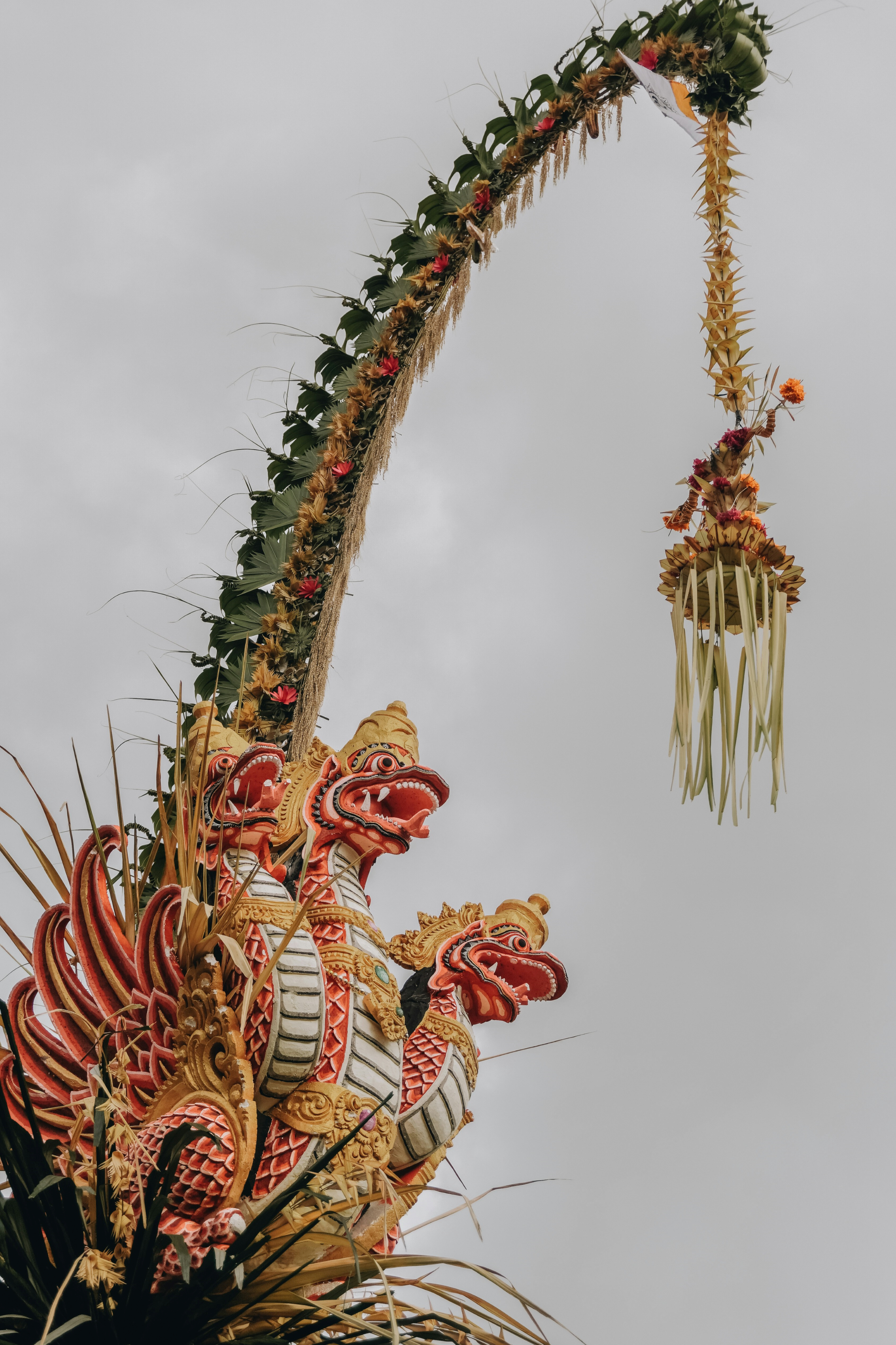 Galungan commemorates the triumph of dharma (duty, virtue, and truth) over adharma (evil). One unique aspect of this festival is the installation of "penjor" poles at every house. Penjor is a tall, curved bamboo pole adorned with coconut leaves (janur). Symbolically, penjor represents prosperity and gratitude.